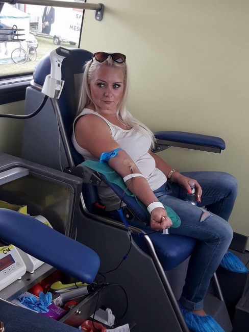 przyjeżdzamy na miejsce specjalnym autobusem przystosowanym do poboru krwi -