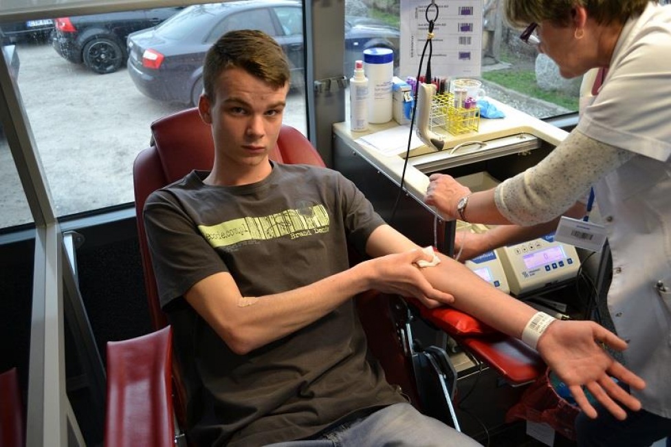 przyjeżdzamy na miejsce specjalnym autobusem przystosowanym do poboru krwi -