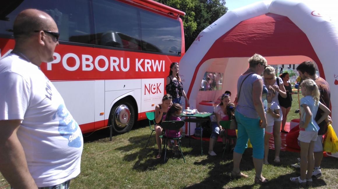 przyjeżdzamy na miejsce specjalnym autobusem przystosowanym do poboru krwi -