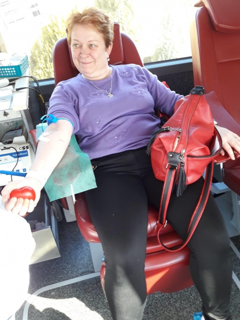 przyjeżdzamy na miejsce specjalnym autobusem przystosowanym do poboru krwi -